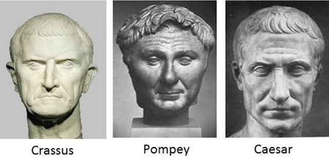 I år 60 f.Kr. indgik tre mægtige mænd, Julius Caesar, Pompejus Magnus og Markus Lisinius Crassus en aftale, som senere er kaldt det første triumvirat.